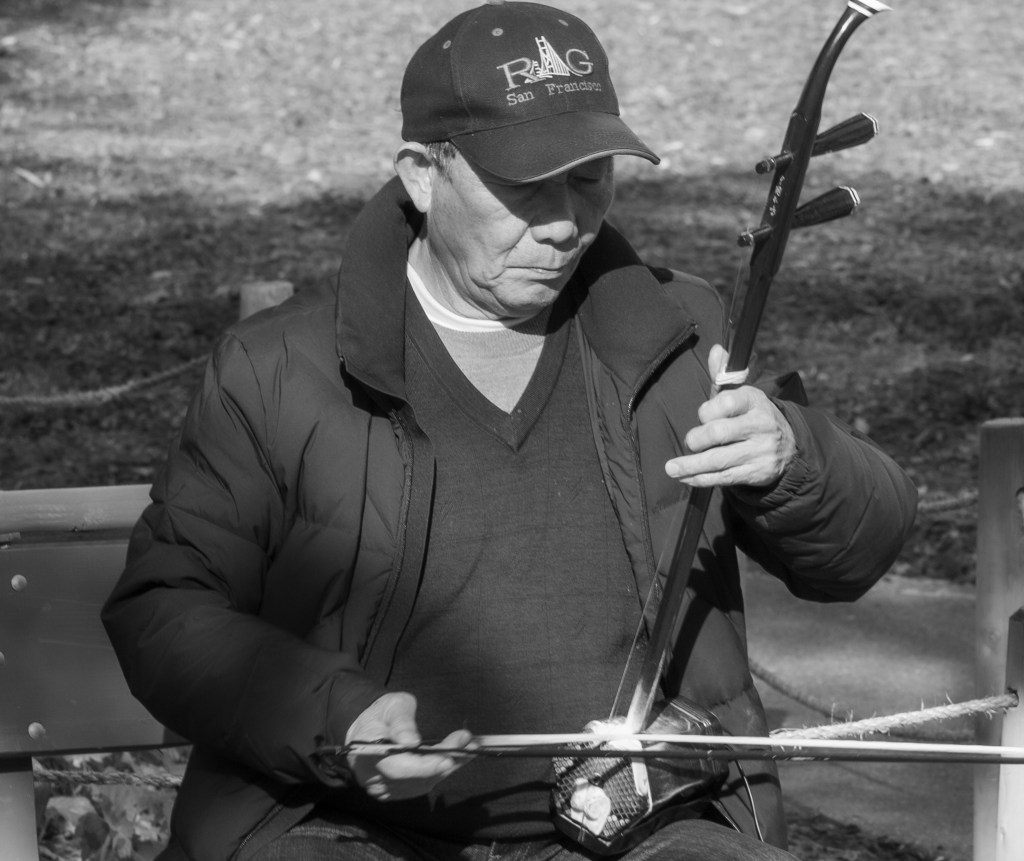 Washington Square is a window into The City’s diversity. On any given morning, walk on the north edge of the park along Filbert Street and you’ll pass a group of Chinese ladies practicing Tai Chi. They’re speaking Cantonese in the very shadow of St Peter and Paul’s looming facade that’s inscripted with Italian praises to God’s glory. Amid the sounds of Muni busses, barking dogs and chatting friends; in the middle of this Italian enclave you’ll hear the enchanting Asian melody of an erhu. He’s an older Chinese man often seen and heard at the corner of Green and Stockton playing his classic Chinese fiddle.