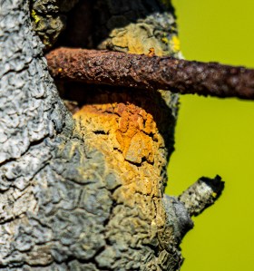 In the end, nature has the last word. Below, a tree branch curves and winds around the wire in an old deer fence.