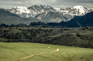 In the mountains of Montana a dirt road curves into the distance. To where?