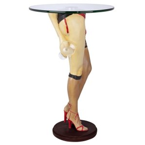 There was the Babette Table, a cocktail table held in place by a torso-less pair of legs wearing stockings, panties and strapped red high heels. Sexy.
