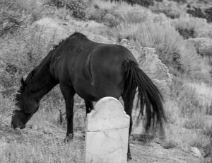 Below: Perhaps my favorite photo of Silver Terrace is of a wild mustang grazing near an old gravestone. If this doesn’t speak of Americana and the Old West, well…