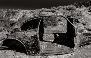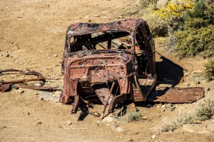 An old wreck like Chemung isn’t worth a damn if it doesn’t hold a tale or two about ghosts. Chemung is said to be haunted by the spirits of miners. Looking at the beer cans and all the bullet holes in the cars and tin walls my guess is that the place is haunted on Friday nights by teenagers and assorted yahoos who venture up to the old mine to drink, plink with their 22’s and make out. It’s doubtful that any nighttime moans that echo through the old hulks are coming from the tortured spirits of dead miners. Unquestionably there are spirits to be found among the ruins at night, and their names are Jägermeister, Wild Turkey, Jack Daniels and Jim Beam. Any moans are likely to emanate from the occasional couple who, after communing with the aforementioned spirits, decide to partake in some naughty business under the high desert skies.