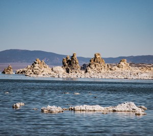 We make a brief stop at Mono Lake and walk one of the interpretive trails. The ancient lake is peaceful and as smooth and clean as glass. The limestone formations called tufa towers that rise up out of the lake give the visitor the feeling of being in another world.