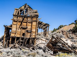 Sometimes “when the going gets tough,” I follow the advice of the old saying and “get going.” Other times I just say, “Forget it, let’s turn the fuck around.” Our teeth are about to rattle out of our skulls from the ragged road, and I’m just about to abort the mission, when I look off to the front right and spot the tell tale headframe of an old mine. A few minutes later I’m looking for a place to park. A place to park? This isn’t the mall on Christmas Eve, I’m a few hundred feet from an abandoned mine in the middle of nowhere. Park the car – any damn where.