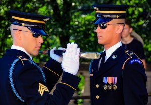 These two Army soldiers perform the sacred daily service of the changing of the guard at the Tomb of the Unknown Soldier
