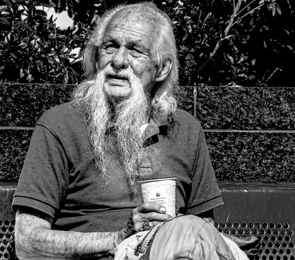 The man in the photo below was sipping his coffee, while watching the world around him. This fellow has the look of one of San Francisco’s many street people. But, who knows, maybe he’s a retiree who decided to let go, be a little eccentric. He might just be spending a day at the park before going home to his million dollar San Francisco flat. In any event, he’s somebody’s son, maybe a father and a grandfather. There are stories in that face.