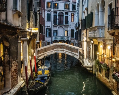 The aircraft is on approach, circling the regal city known as “La Dominante.” Forehead leaning against the window I look down and easily pick out the features. There’s the Grand Canal, busy with water traffic; vaporettos, working boats, and pleasure craft. I can even see the gondolas, little water bugs bobbing on canals big and small. Over there is Piazza San Marco and across the water the distinctive Basilica di Santa Maria della Salute.