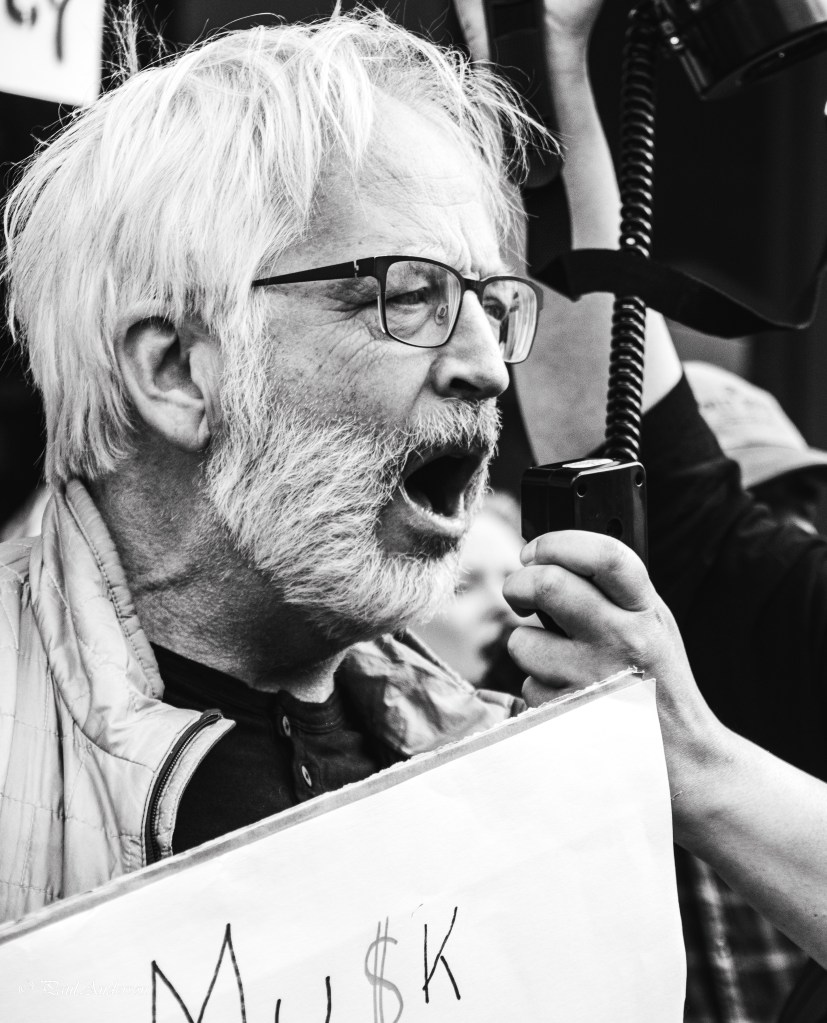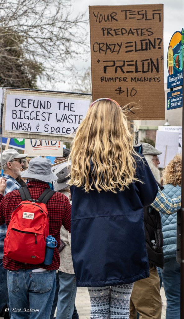 It’s the third straight week that Cora and I have joined the Saturday protest at the Tesla dealership in Walnut Creek. On March 8th, the crowd was estimated at around 500. The following week the crowd was estimated at 700. On this, the third week, the crowd size was estimated at 1000.