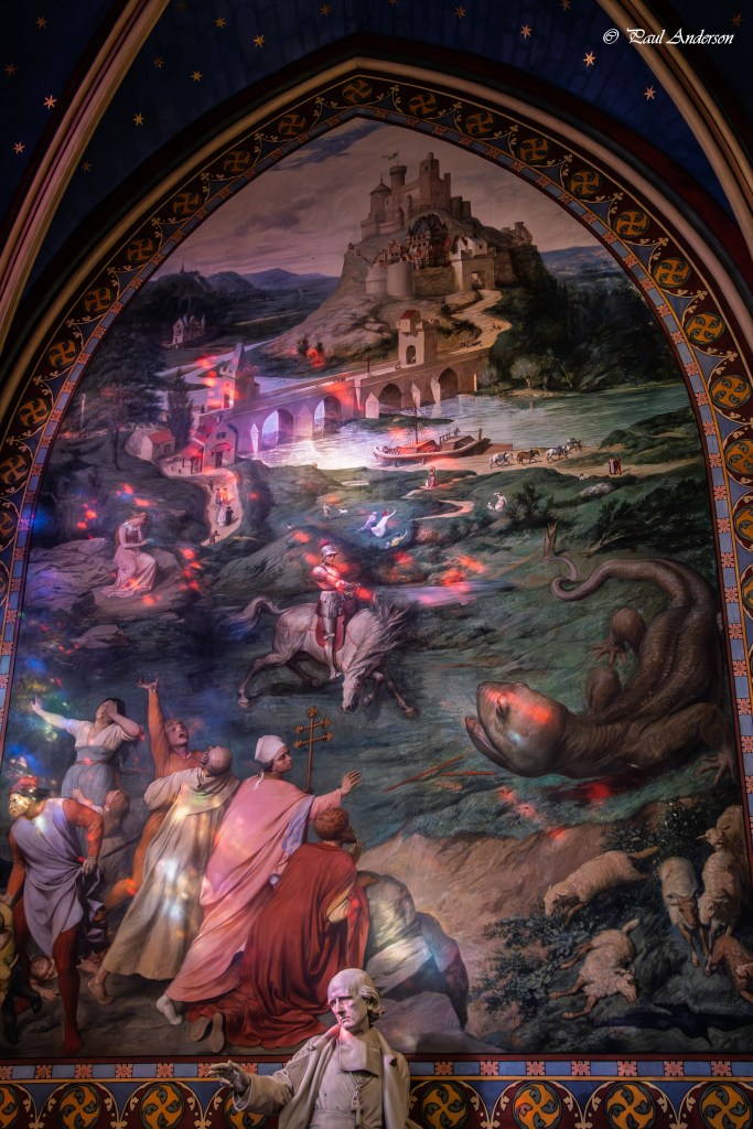 Or the sunlight filtered through stained glass that dappled one of the frescoes.