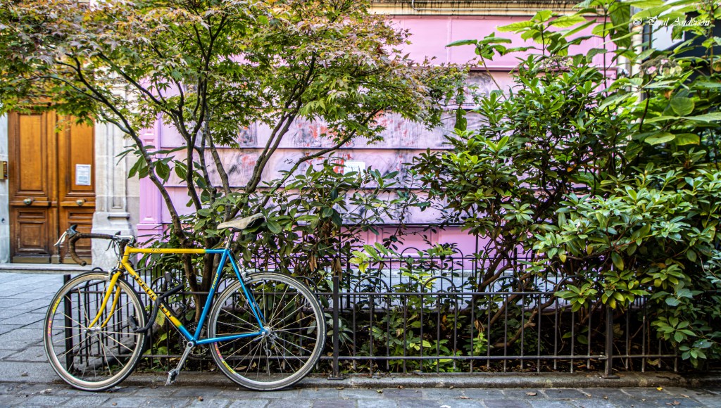 Rue du Trésor is a little dead end alley. Looking down the the little street I saw lush greenery and a bright pink building. Sometimes it’s a blue and yellow bike and a bright pink building that catches your eye,