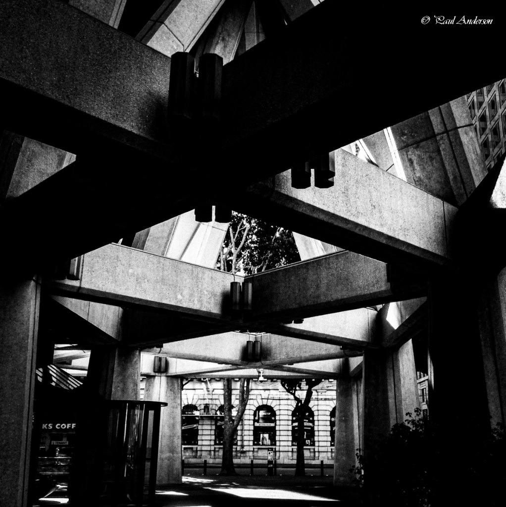 I’ve taken to geometric photography and I think that monochrome suits it well. The TransAmerica Pyramid with its overall shape and the many beams at the base, is a great place to capture the geometry of modern architecture.