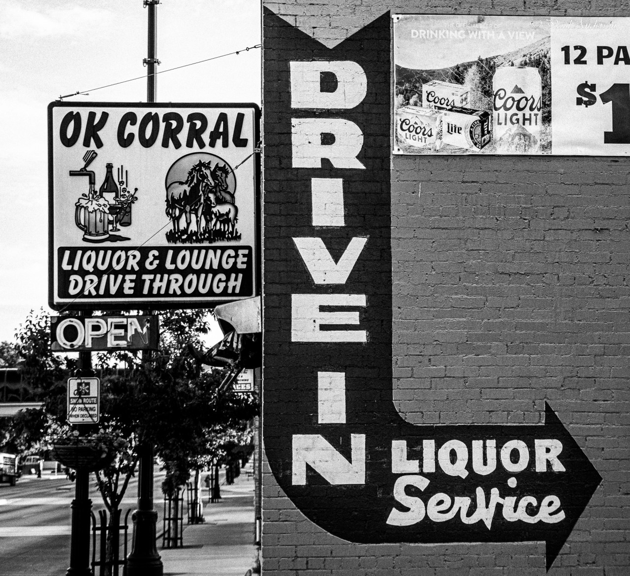 ‘Mer·i·ca/ˈmerəkə,ˈmərəkə/nouninformal•US EnglishAmerica (used especially to emphasize qualities regarded as stereotypically American, such as materialism or fervent patriotism). Banner photo: A drive through liquor store in Sheridan, Wyoming. What could possibly go wrong? Strip the color from an image and what are you left with? An ordered story. A quiet, pointed narrative free from the screaming …